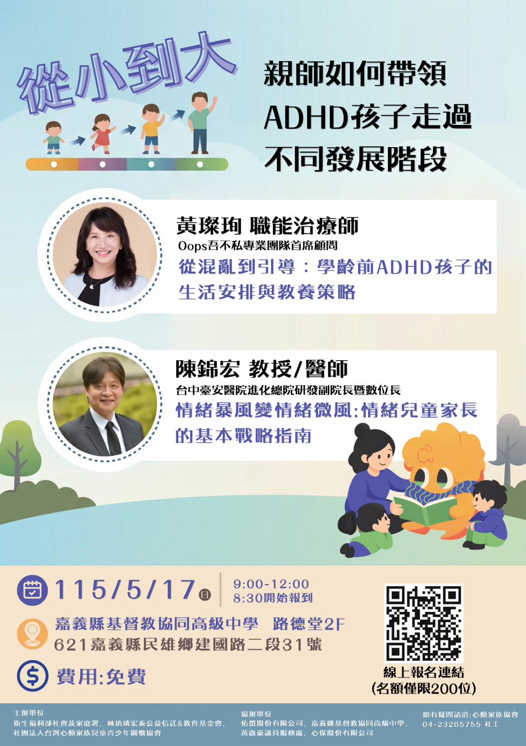 本會長期關注注意力不足過動症(ADHD)兒童青少年之心理健康與人際適應議題,規劃辦理免費之教師研習及家長教育活動。 |